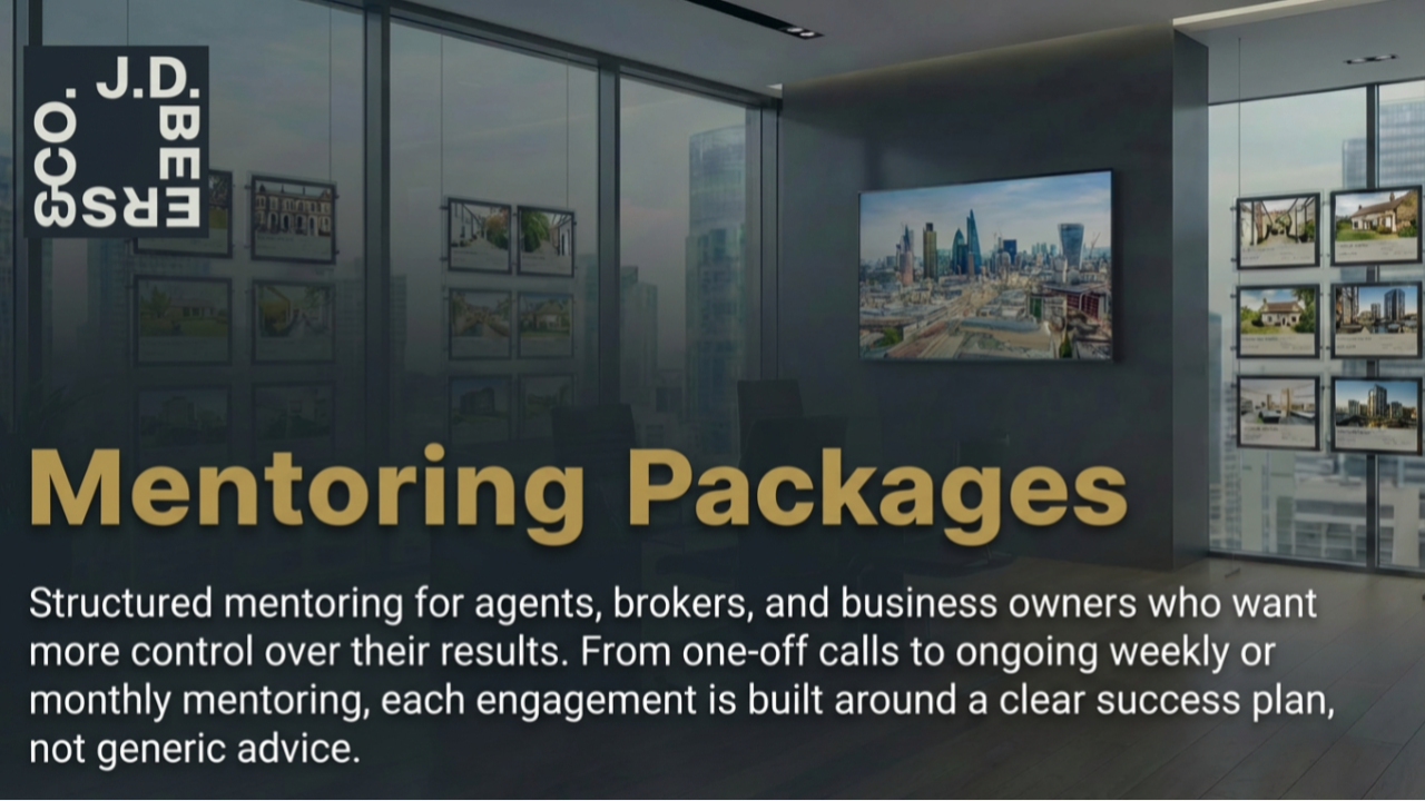 Structured mentoring for agents, brokers, and business owners who want more control over their results.